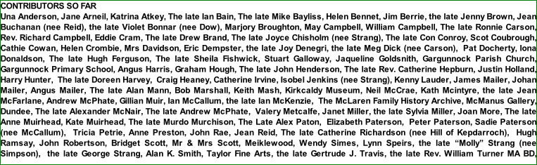 The late Miss Sylvia Miller of Provost Park Cottage sparked my interest in local history and provided much information, support and encouragement both for the archive and also for the local magazine while I was producing it. She had always been around during my lifetime, a weel-